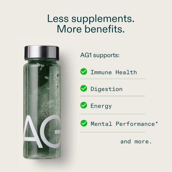Most multivitamins fall short. AG1 packs 75+ bioavailable nutrients — vitamins, minerals & probiotics — into one daily scoop to support whole body health.