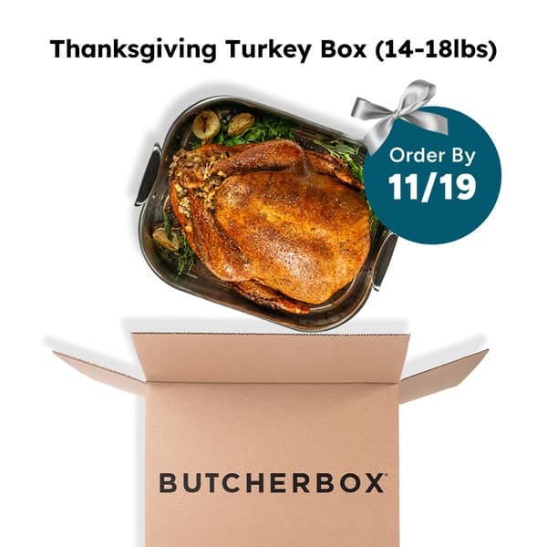 We're giving a FREE 10-14 lb turkey in your first box when you sign up for ButcherBox today. Order by 11/18 to get yours in time for Thanksgiving.
