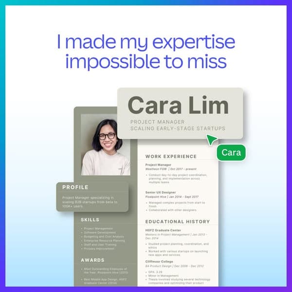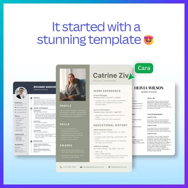 Get yourself seen with a brand new resume. Choose from 100s of templates. Design one for free today!
