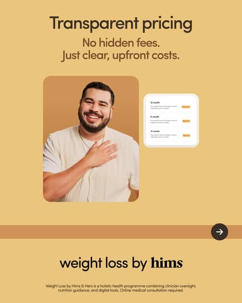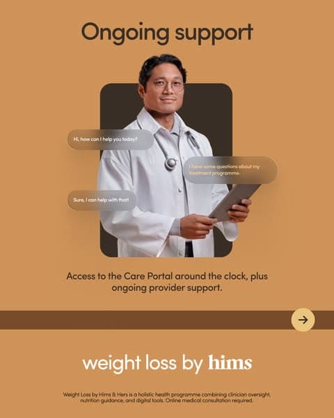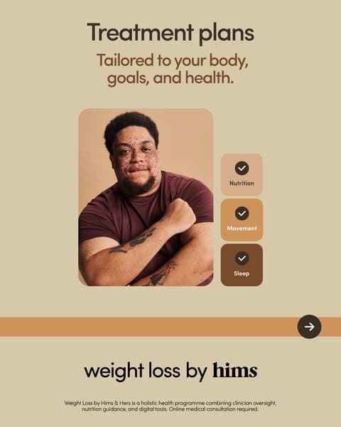 Weight Loss by Hims & Hers is a holistic health programme combining clinician oversight, nutrition guidance, and digital tools. Online medical consultation required.
