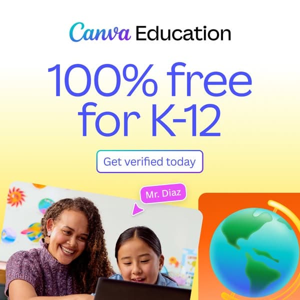 Teachers, spread the word! Get verified today and simplify your back-to-school prep with Canva Education. It’s 100% FREE for K-12 teachers and students.