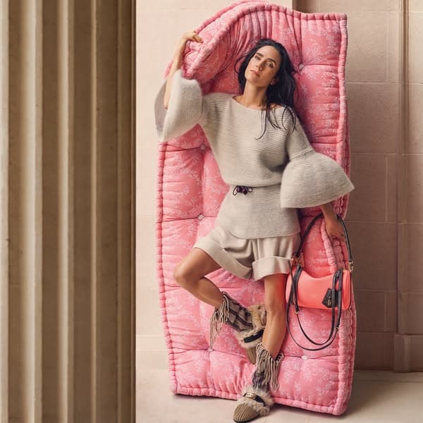 Accented by vivid pink, new editions of the Express bag punctuate the collection, worn by House Ambassador Jennifer Connelly.