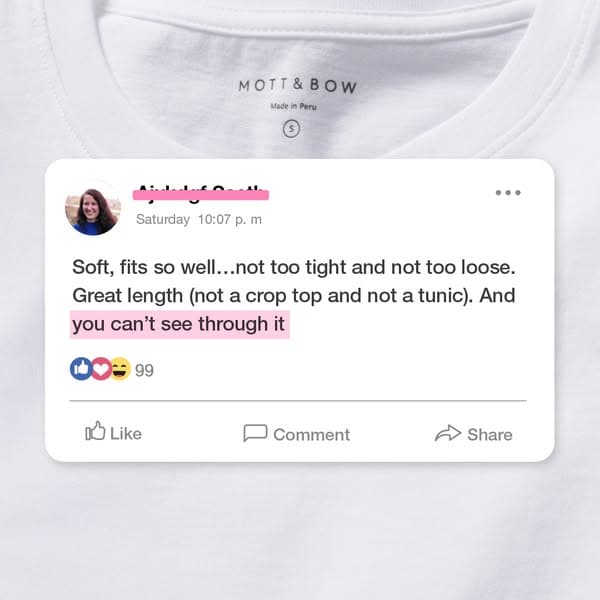 If you’re a bigger busted gal, you’ll LOVE our tee. Praised by The New York Times for “the width and depth of the V-shape neckline”, this tee is absolutely flattering, luxuriously soft and ultra comfortable.