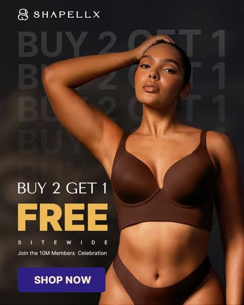 Shapellx is celebrating 10M members! They’re offering BUY 2, GET 1 FREE sitewide! 🛒