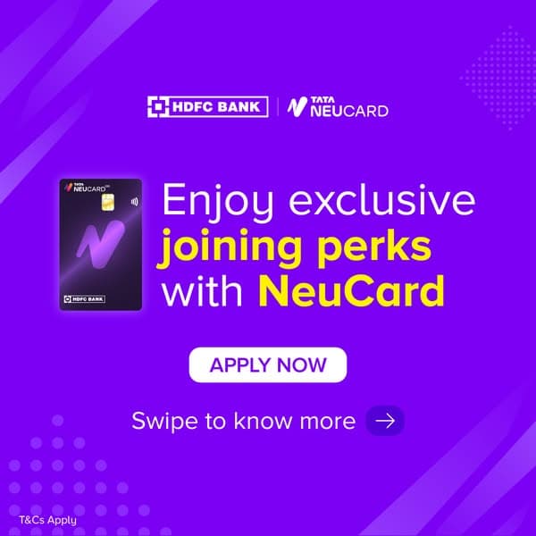 Pay with NeuCard and enjoy up to 10% savings ✨ while earning NeuCoins. Use them across fashion, travel, hotels and bill payments in the Tata universe. 1 NeuCoin = ₹1.