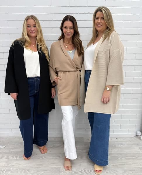 Beth wears a 10 and is 170cm, Kym wears an 8 and is 175cm x