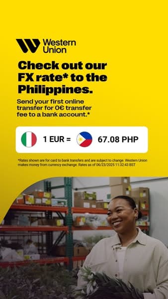 New online customers get our best exchange rate, and we will waive the first transfer fee. Send money to bank accounts from the Western Union app or from westernunion.com