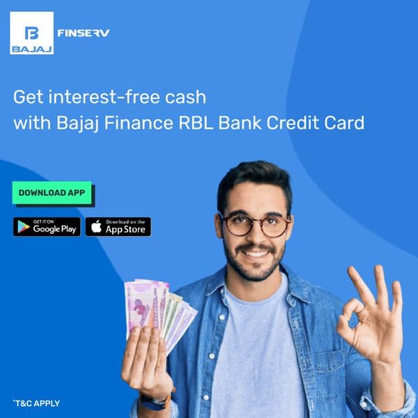 केवल अपने बजाज फिनसर्व को-ब्रांड क्रेडिट कार्ड से ५० दिनों के लिए शून्य ब्याज पर नकद निकासी का आनंद लें।