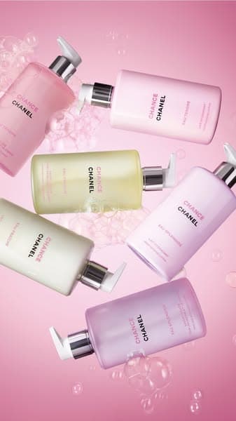 香奈兒為「香奈兒CHANCE紫色霓幻系列」、「CHANCE粉紅甜蜜系列」與「CHANCE綠色氣息系列」舒適愉悅的香氛儀式加入兩個全新步驟,推出沐浴露與身體乳。