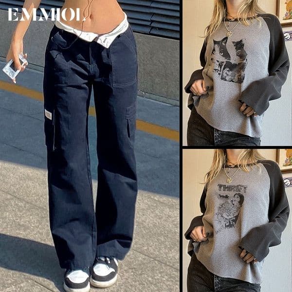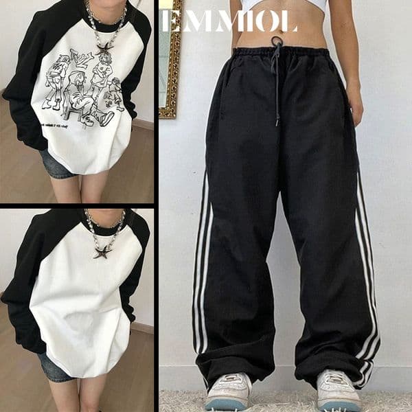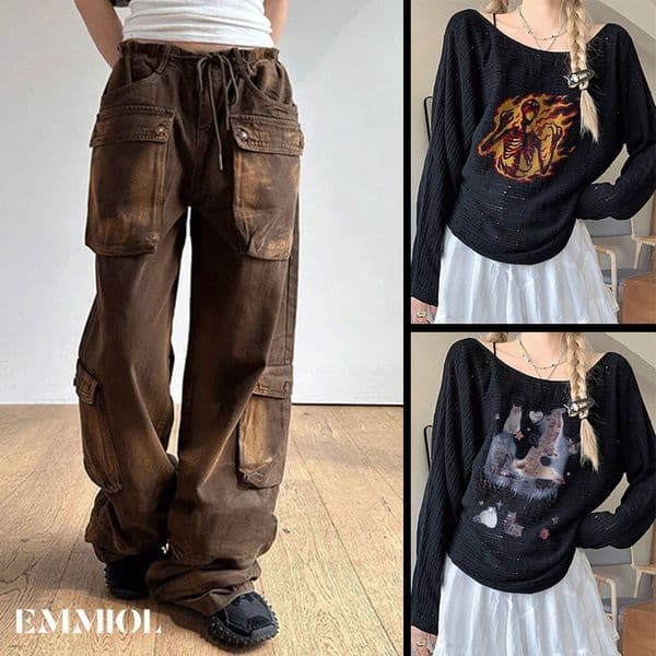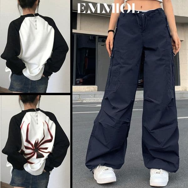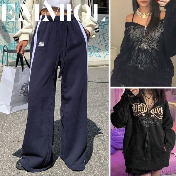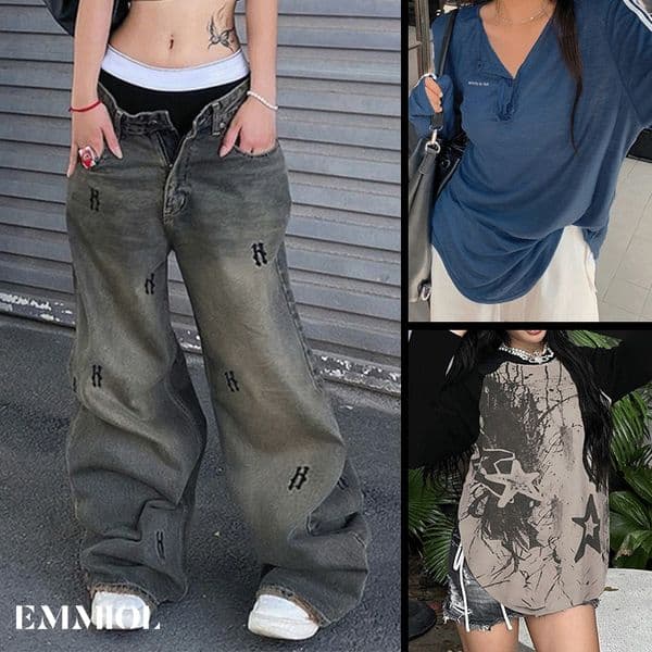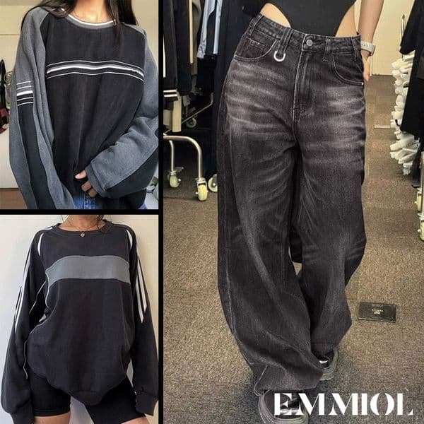 ✨Punk Spider Print Oversized Hoodie & Jeans