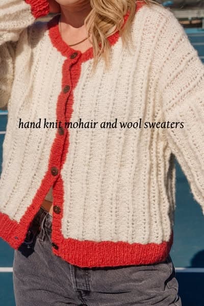 Hand knit sweaters by a fair trade organization in Nepal that helps fund a primary school and skills classes for the community.