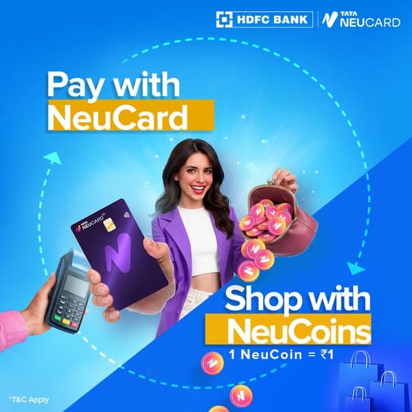 Pay with NeuCard and enjoy up to 10% savings ✨ while earning NeuCoins. Use them across fashion, travel, hotels and bill payments in the Tata universe. 1 NeuCoin = ₹1.